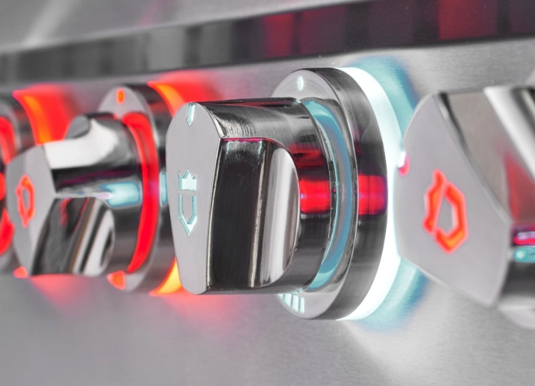 Light up the night with the Infinite Series lighting. Heat-indicating Face Lights (LED Knobs) changes colors when the burner is on.
