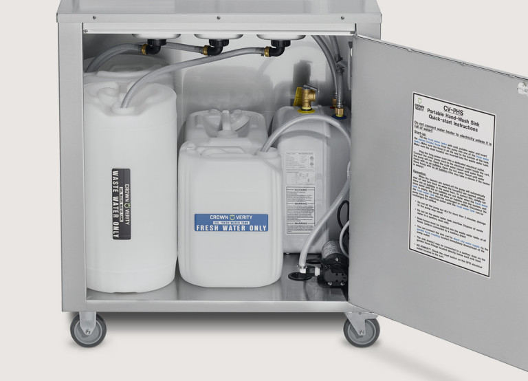 Removable water tanks make for easy filling and maintenance. You can safely dispose of wastewater, but always leave the sink on site.