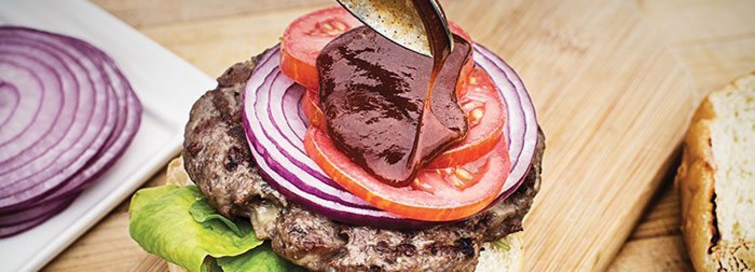 - Cook the burgers on a very hot grill, brushing with the glaze each time they are turned. Warm the buns on the side or on the top rack. Once the burgers are cooked through, remove from the grill and brush once more with the glaze.